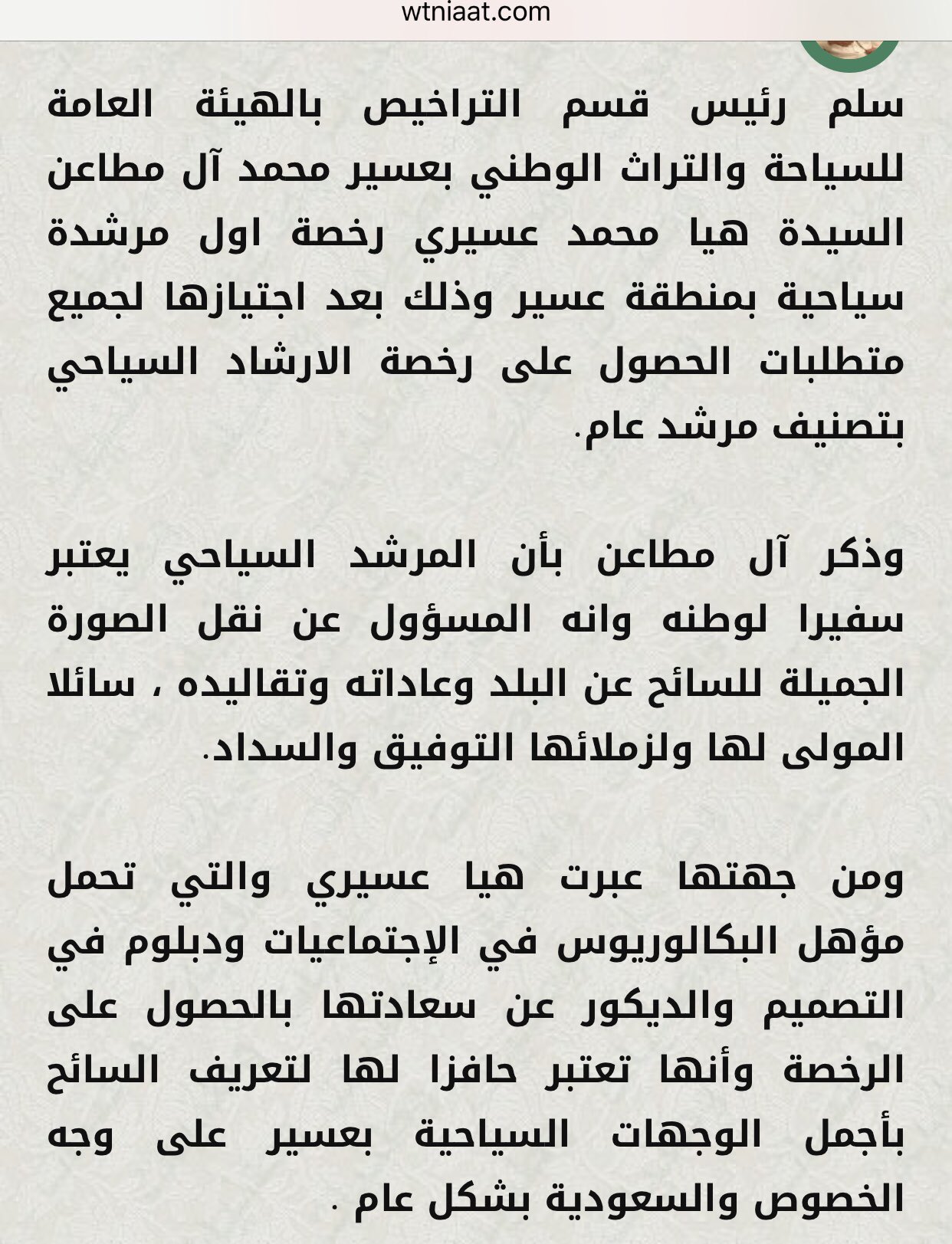 هيا العسيري 2020 A Twitter تمت ولله الحمد حصولي على رخصة الارشاد السياحي كأول مرشدة سياحية مرخصة في منطقة عسير