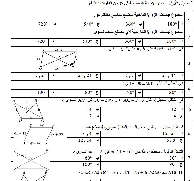أسئلة أختبار نهائي الأجابة لمادة الرياضيات أول متوسط ف2 لعام 1437 هـ 2016 منتدى التعليم توزيع وتحضير المواد الدراسية