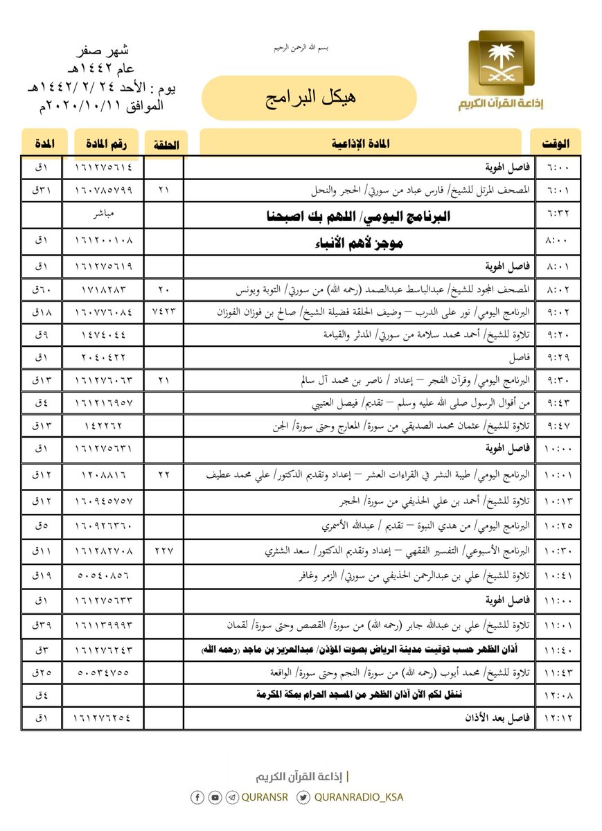 إذاعة القرآن الكريم On Twitter هيكل تلاوات وبرامج إذاعة القرآن الكريم ليوم الجمعة 1441 7 4