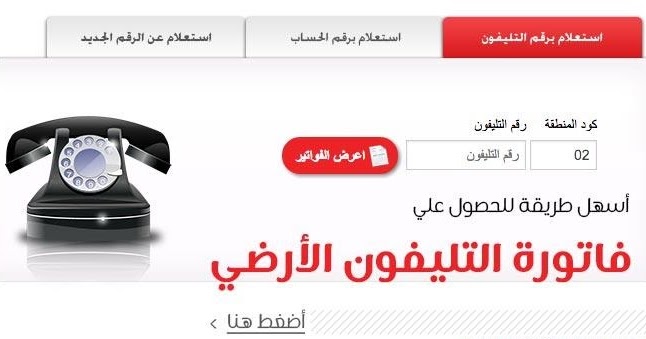 الاستعلام عن فاتورة التليفون الأرضي من المصرية للاتصالات لشهر أكتوبر
