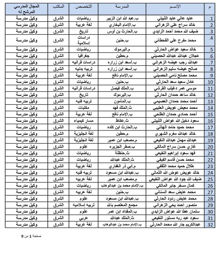 بالأسماء تعليم الشمالية تنشر أسماء المعلمين الجدد وتحدد مدارسهم بقطاعات المنطقة الحدود الشمالية رفحاء عرعر طريف العويقيلة