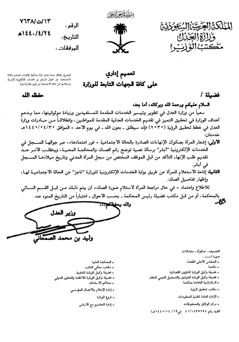 مبادئ القضاء En Twitter تعميم وزارة العدل بإشعار المرأة بصكوك الإنهاءات حول الحالة الاجتماعية وما يطرأ عليها برسالة جوال وتمكين المرأة من الاستعلام عن حالتها الاجتماعية وأمورها الزوجية Https T Co D0ujzkvqe9