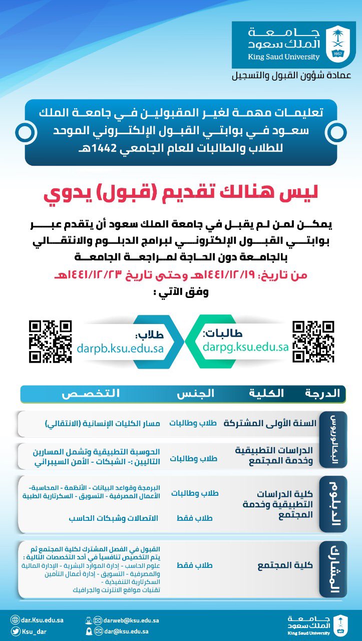 عمادة القبول والتسجيل On Twitter الجدول الزمني لقبول الطلاب والطالبات عبر بوابتي القبول الموحد للطلاب Https T Co Nmui90c17y للطالبات Https T Co Cu2uhgxcw8 Https T Co Bazhnt1405