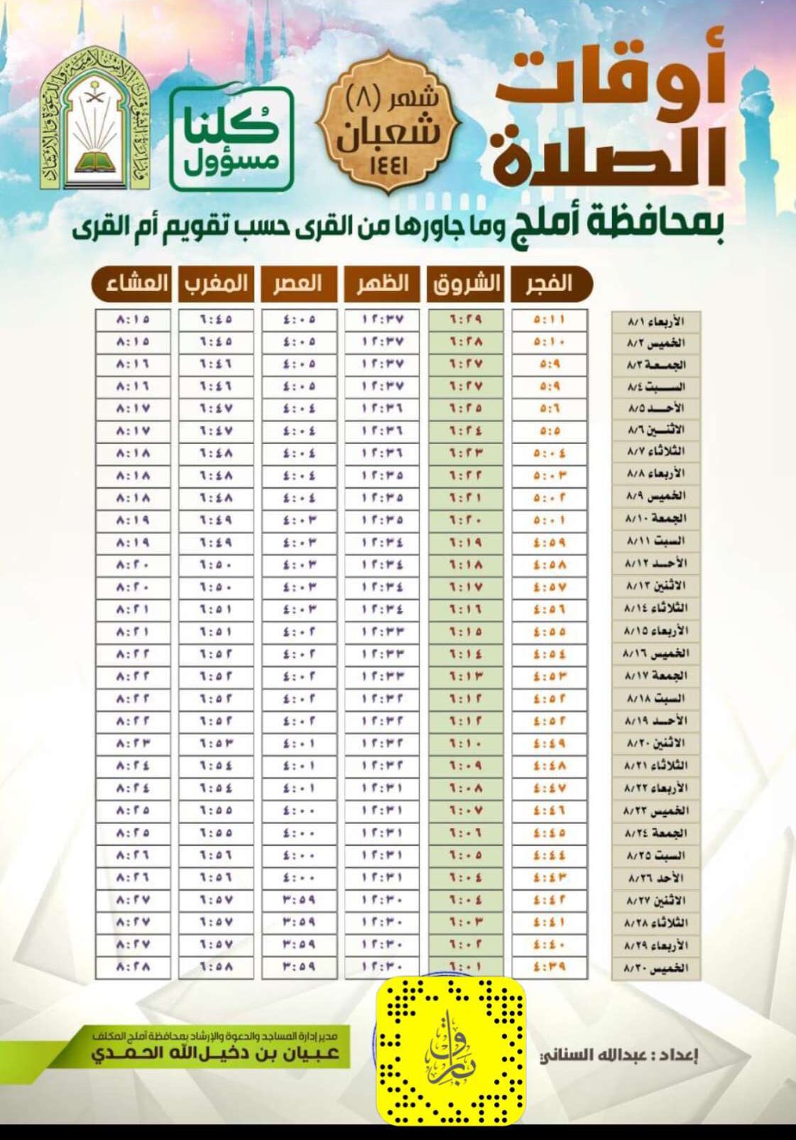 عبدالله العلااااطي On Twitter أوقات الصلاة في أملج لشهر شعبان
