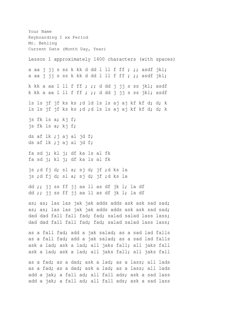 Your Name Keyboarding I Xx Period Mr Behling Current Date Month Day Year