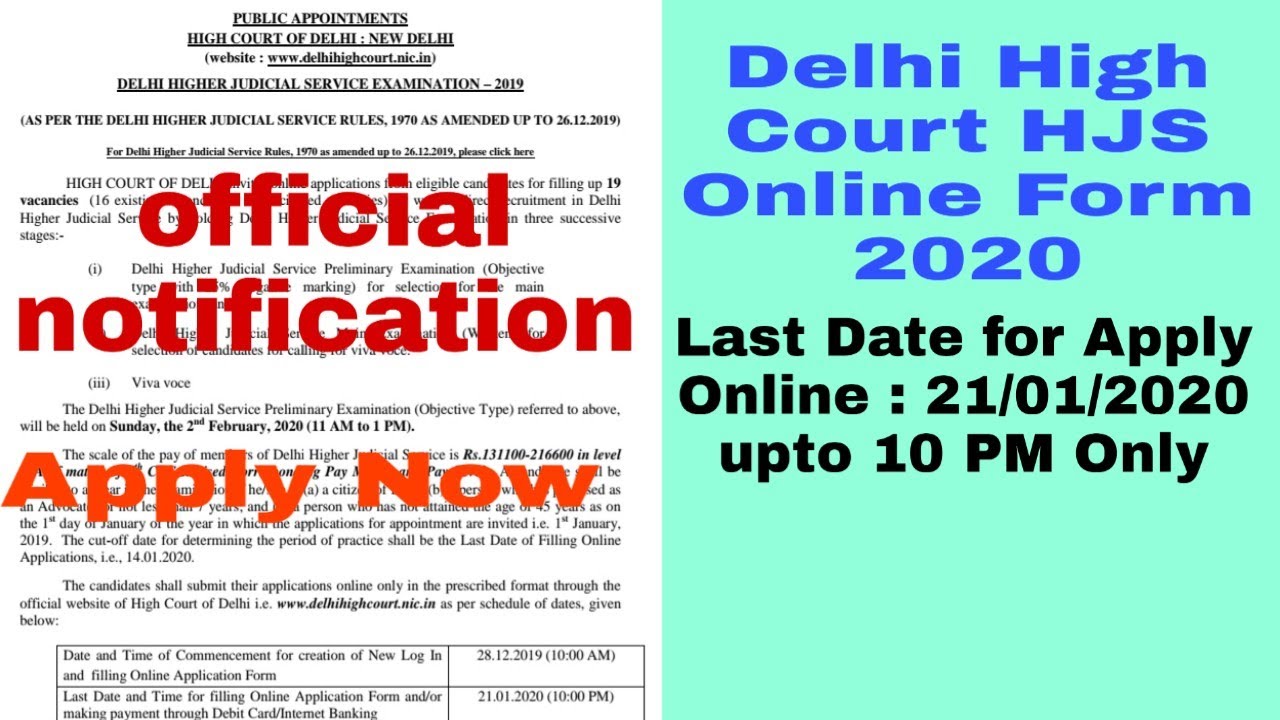 Delhi Higher Judicial Service Recruitment Online Form 2020 Hjs Online Form 2020 Delhi Hjs 2020 Youtube
