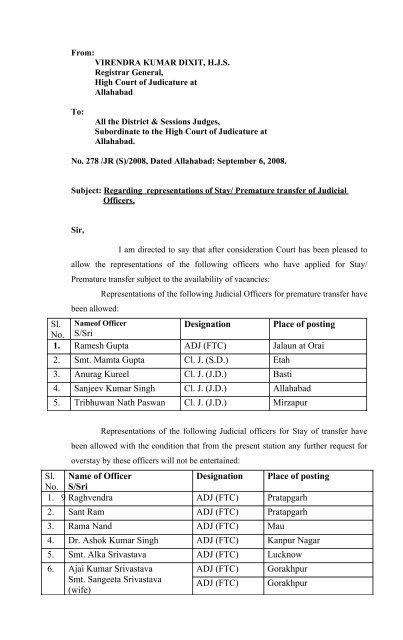 From Rajiv Sharma Hjs Joint Registrar Judicial Registrar Judicial Services High Court At Allahabad To The I C Director Institute Of Judicial Training Research Sri Alok Kumar Trivedi Pdf Document