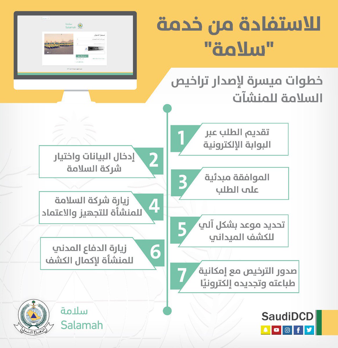 الدفاع المدني السعودي لأن سلامتكم وراحتكم غايتنا أطلقنا خدمة سلامة لإصدار وتجديد تراخيص السلامة إلكتروني ا سلامتنا وسلامة منشآتنا Https Salamah 998 Gov Sa فيسبوك
